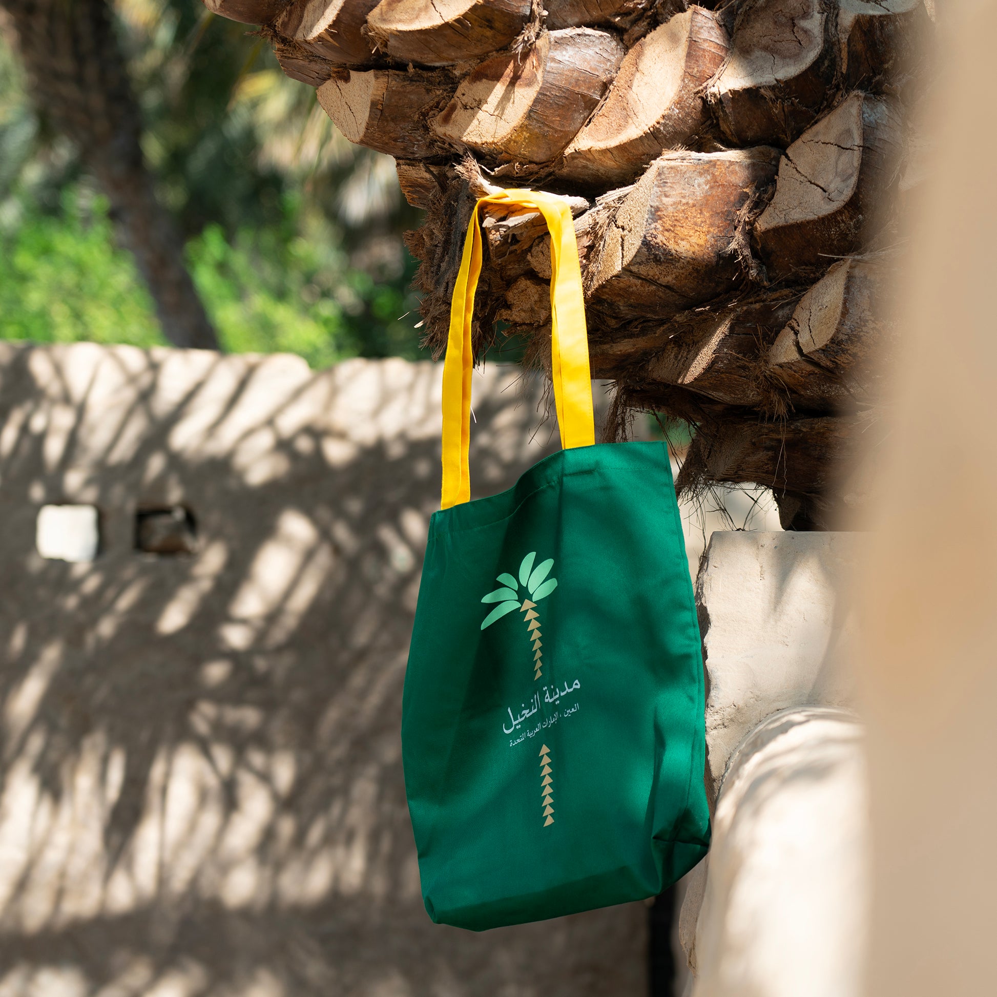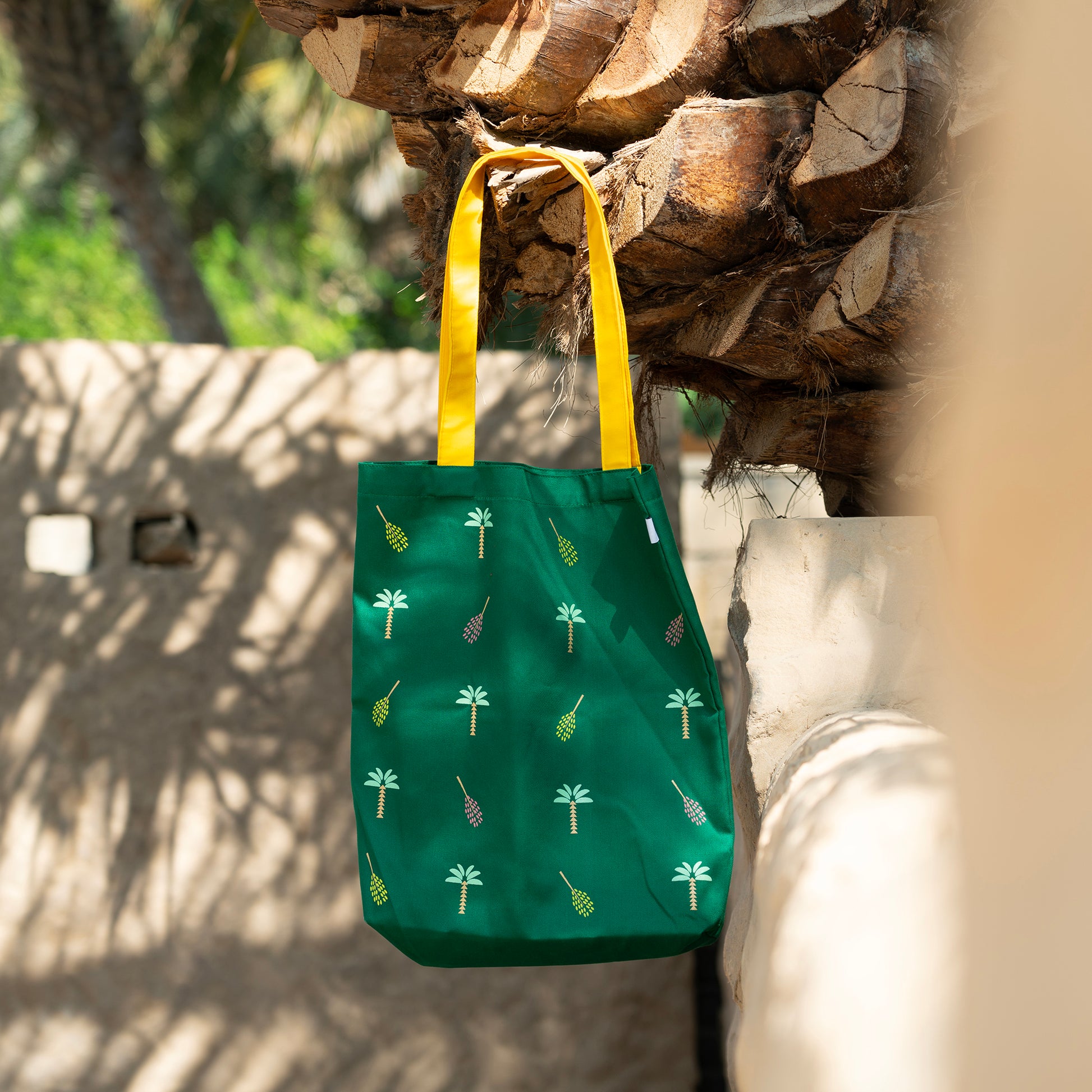 A fabric tote with palm tree design, inspired by Al Ain Oasis